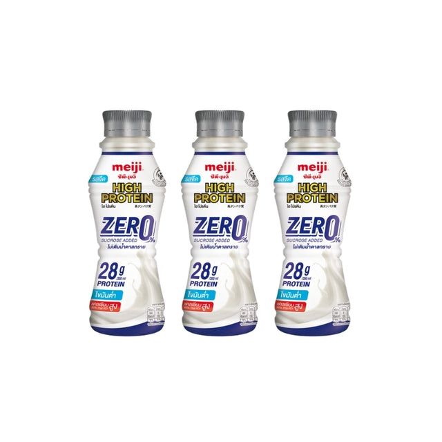 แพ็ค 3 ขวด เมจิ ไฮโปรตีน ไม่เติมน้ำตาล โปรตีนสูง พกพาสะดวก เหมาะกับคนที่ใส่ใจสุขภาพและออกกำลังกาย