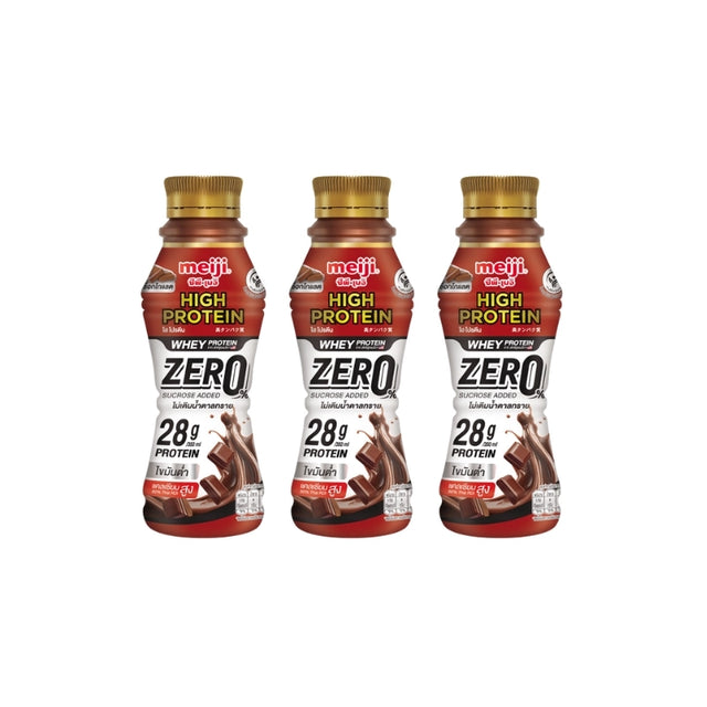 แพ็ค 3 ขวด เมจิ ไฮโปรตีน สูตรเวย์ รสช็อคโกแลต ไม่เติมน้ำตาล เติมโปรตีนได้สะดวก เหมาะสำหรับคนรักสุขภาพและออกกำลังกาย