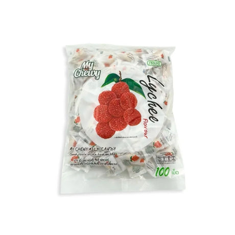 ลูกอมนมเคี้ยวหนึบกลิ่นลิ้นจี่ ตรามายชูวี่ 360 กรัม x 100 เม็ด / ห่อ