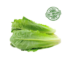 Organic cos lettuce with long, bright green leaves and crisp stalks. Juicy texture with a mild, refreshing flavor.