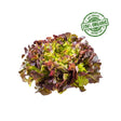 Organic red oak lettuce with curly leaves in reddish-purple and green tones. Crisp, fresh texture with a mild, non-bitter flavor.