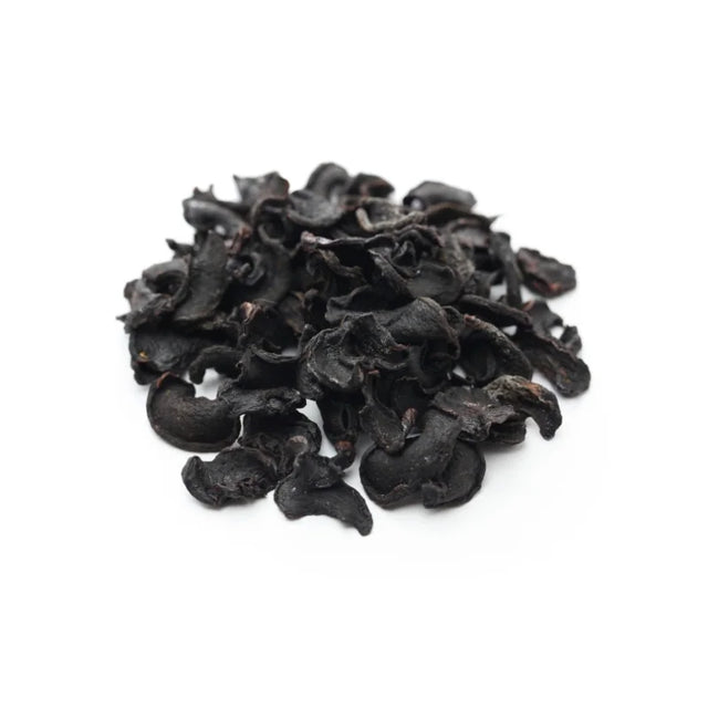Dried Garcinia (ส้มแขกแห้ง) with a tangy, sour flavor. This fruit is commonly used in Thai cooking, especially in soups and curries, to add a zesty, tart taste. It's also used in traditional herbal remedies and beverages for its health benefits.